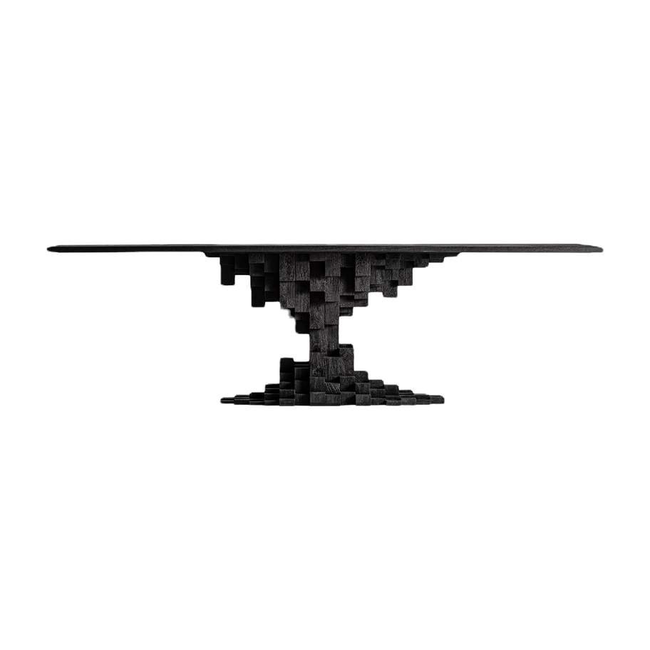 Трапезната маса PÈTRIA от VICALDESIGN, проектирана от Pep Gramage, се издига като базалтов стълб: здрава и внушителна, с просторен плот, поддържан от една централна колона, която внушава силата на вулканичния произход. Монументалният ѝ дизайн, дефиниран от изчистени линии и впечатляваща геометрия, превръща трапезното пространство в място за съзерцание и непреходен характер.