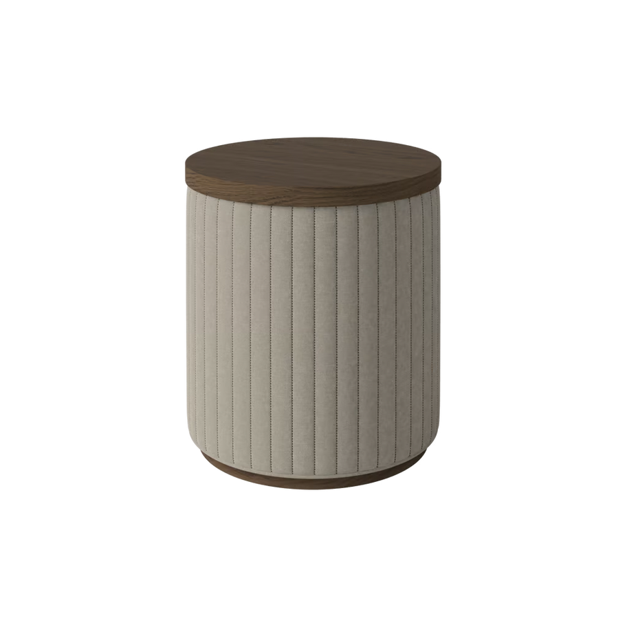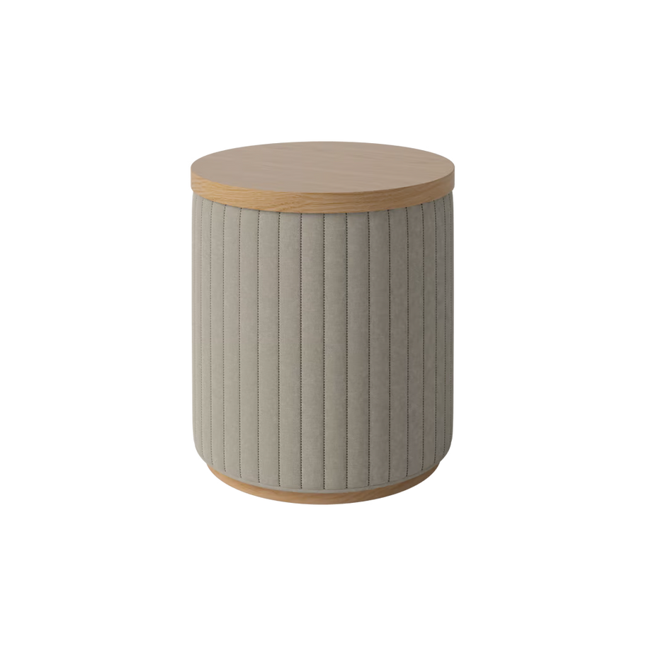 Пуфът Rigato съчетава традиционна изработка с модерен дизайн. Дамаската е внимателно приложена чрез усъвършенствана техника, която свързва материалите, създавайки капитониран ефект с впечатляващи, динамични линии. Този метод подобрява тактилното усещане, добавяйки текстура и дълбочина към дизайна. Дизайнът е със сертификат FSC™, а подносът Rigato Tray е изработен от дъбов фурнир и може да се обръща, за да служи както като функционален плот, така и като стилен поднос за сервиране. Предлага се със или без поднос, както и със сваляем калъф, което го прави универсално и непреходно допълнение към всеки интериор. Показаният модел е тапициран със стандартната дамаска Soil.