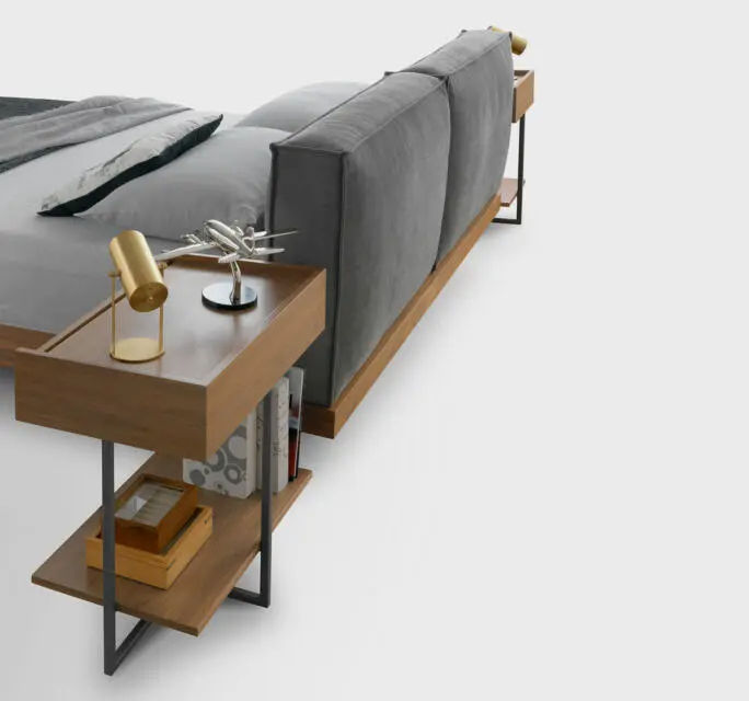 Легло с дървена рамка от орех или дъб и меки възглавници на таблата. Предлага се в разнообразие от дамаски, цветове и размери.