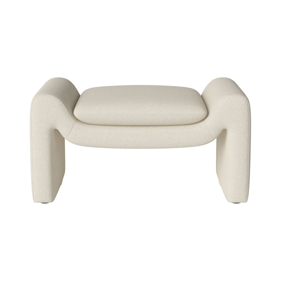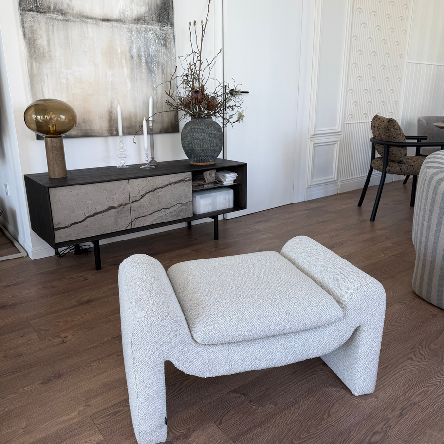 Invite an iconic armchair into your living room. The Mielo armchair and accompanying footstool have a sculptural lounge look with timeless, organic shapes. Created with a focus on comfort, character, and handcrafted European quality. With its open shape, it welcomes you to sit comfortably and relaxed, with a reversible seat cushion to extend its lifespan. Mielo is beautiful from every angle, complementing any contemporary interior, and will surely attract the attention of your guests. Material and colour: Adria - Bouclé & texture, Ivory